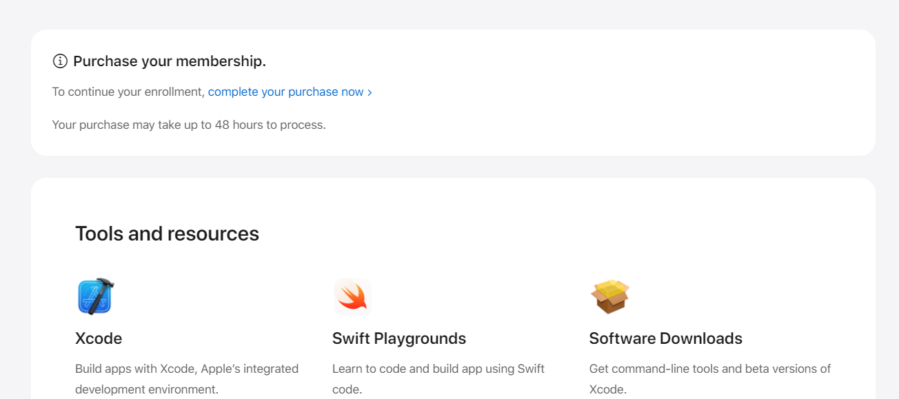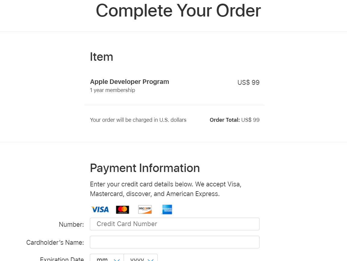 After you have logged in with any apple id on the site https://developer.apple.com / you will be asked to pay $99. I only got this after I logged out and logged into the site.