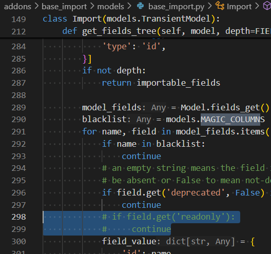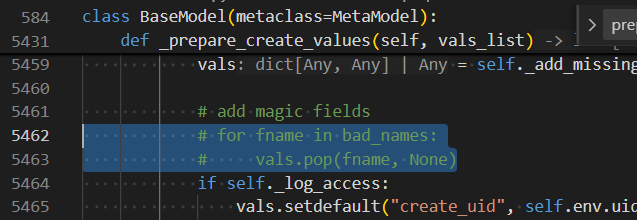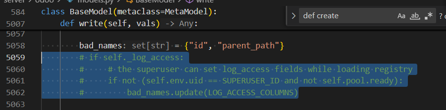 Example 1. in account.move.line import we comment create, write in account.move.line and write in account.move.